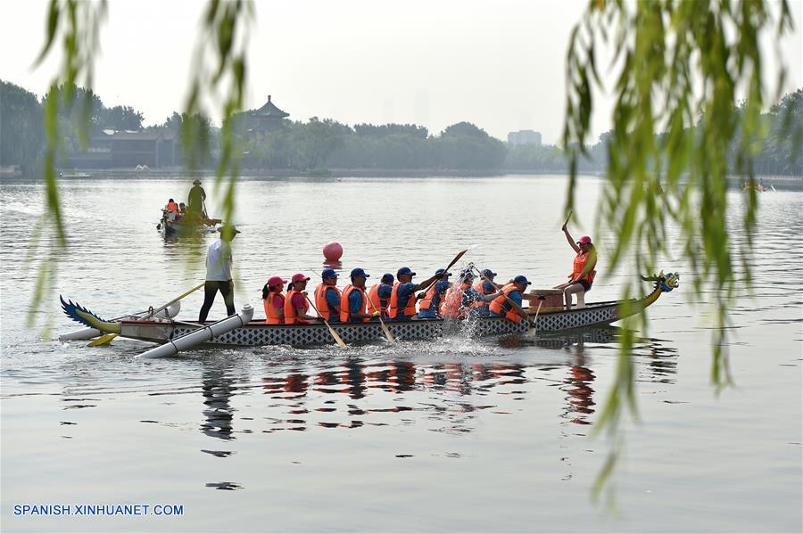 Beijing: Competencia de botes de dragón para saludar el próximo Festival del Bote de Dragón