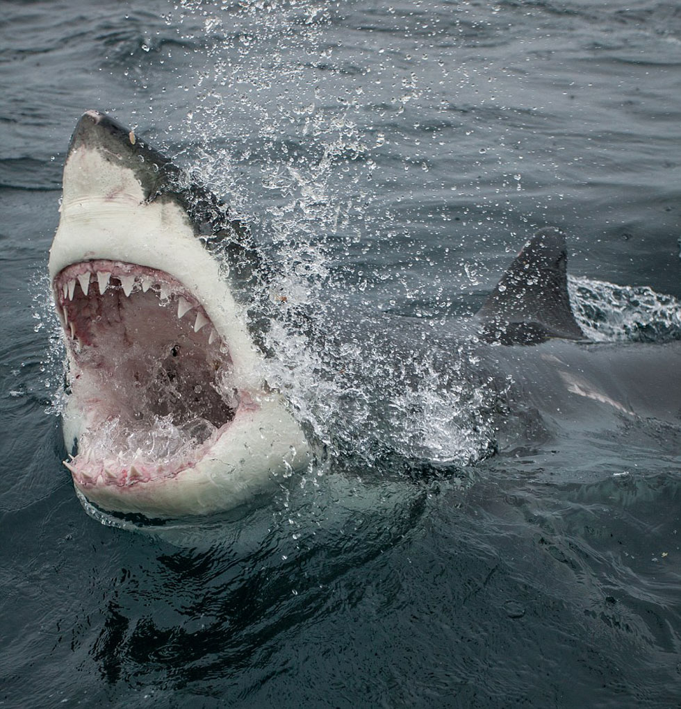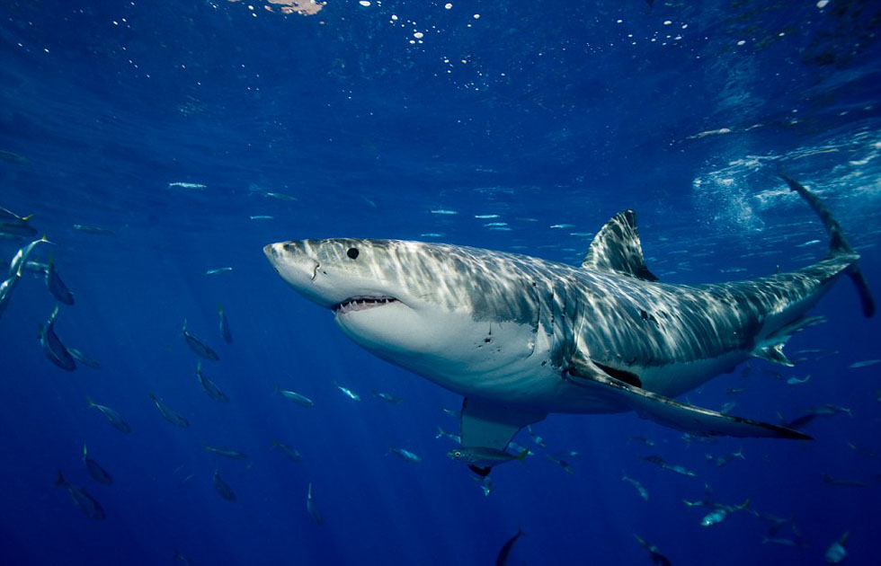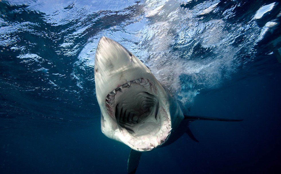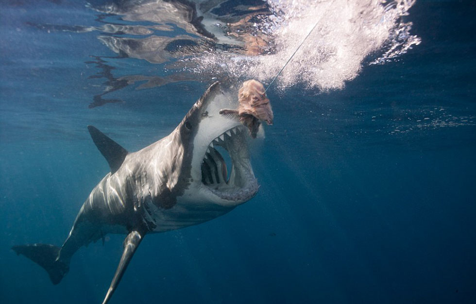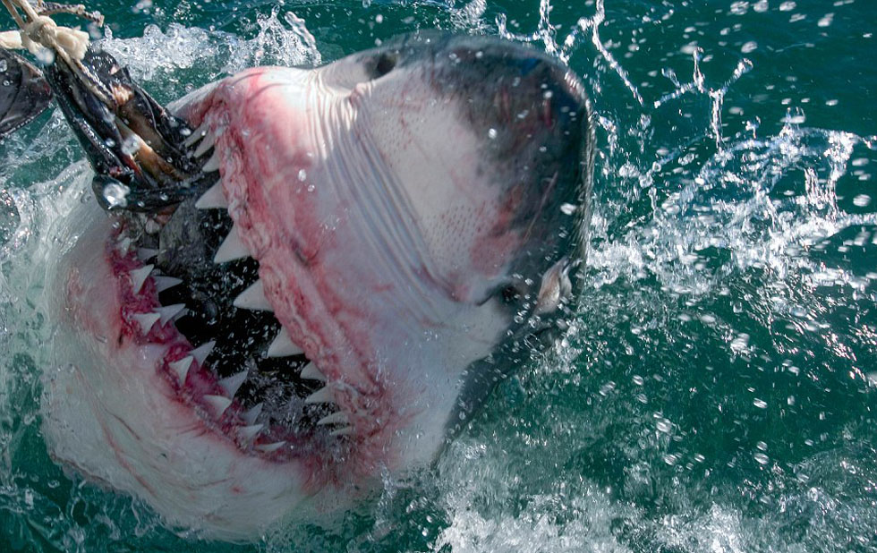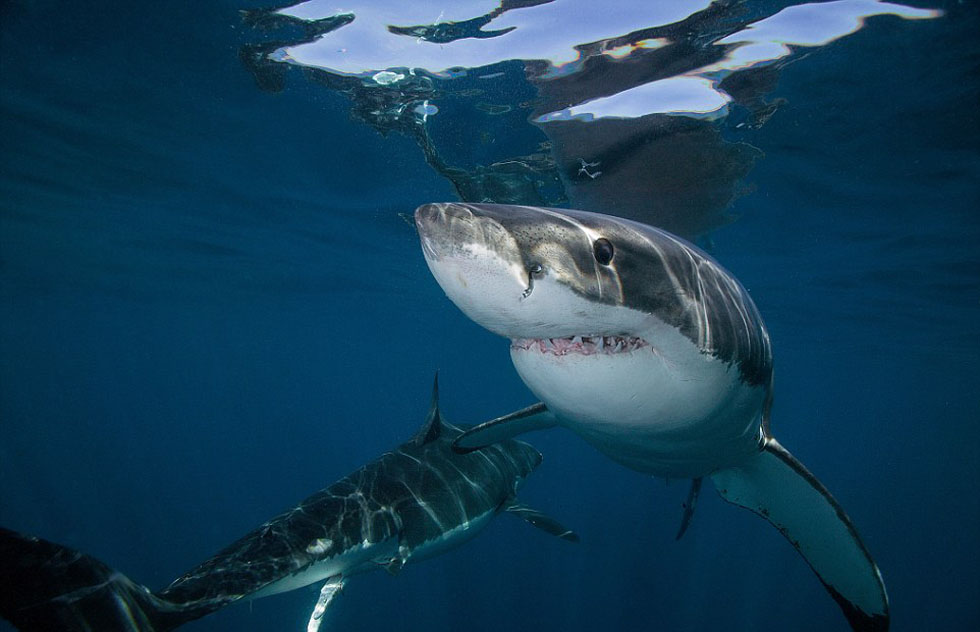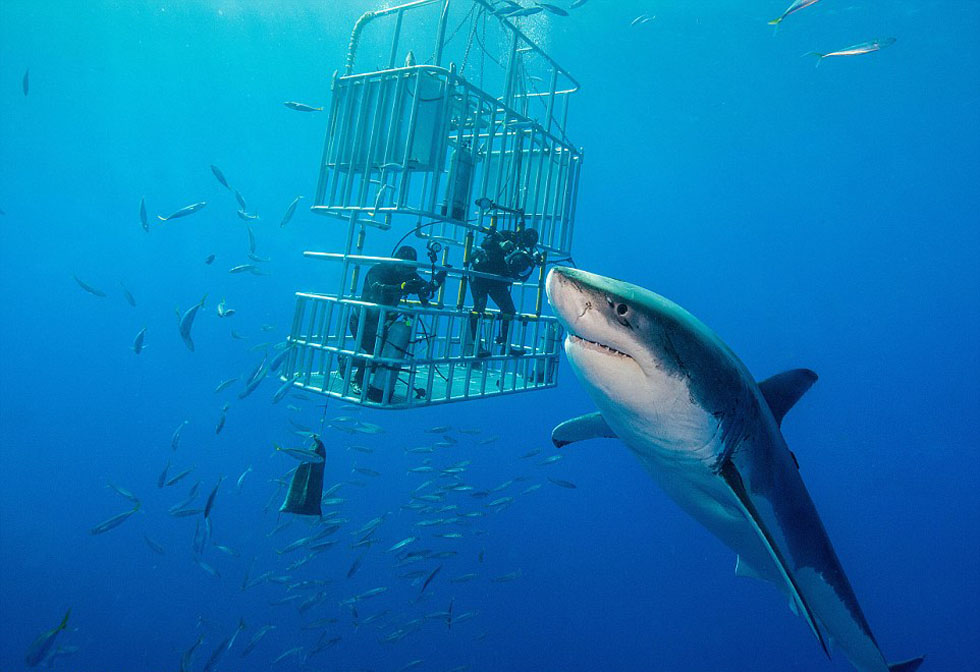 Un turista estadounidense hace fotos de cerca para los grandes tiburones blancos